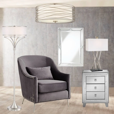 A spun silver finish metal frame winds itself like rivulets around the white inner shade of this flushmount ceiling light. The transitional style design is sure to add interest and contemporary appeal to your living space. Featuring a bottom glass diffuser this ceiling light will make a great addition to family rooms, bedrooms, and more.